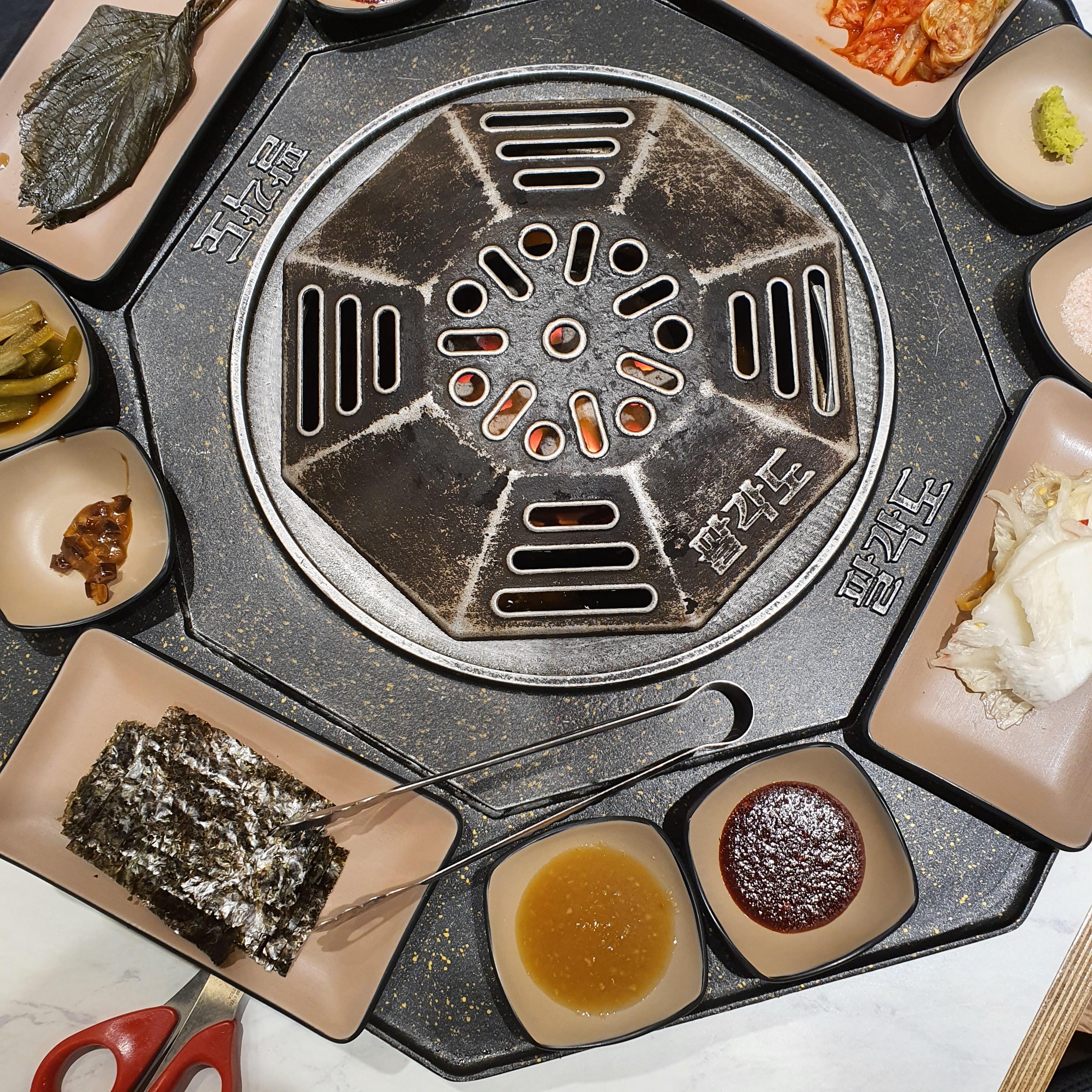 가운데는 숯불이 들어가고 팔각형 모양의 불판으로 덮어줬네요