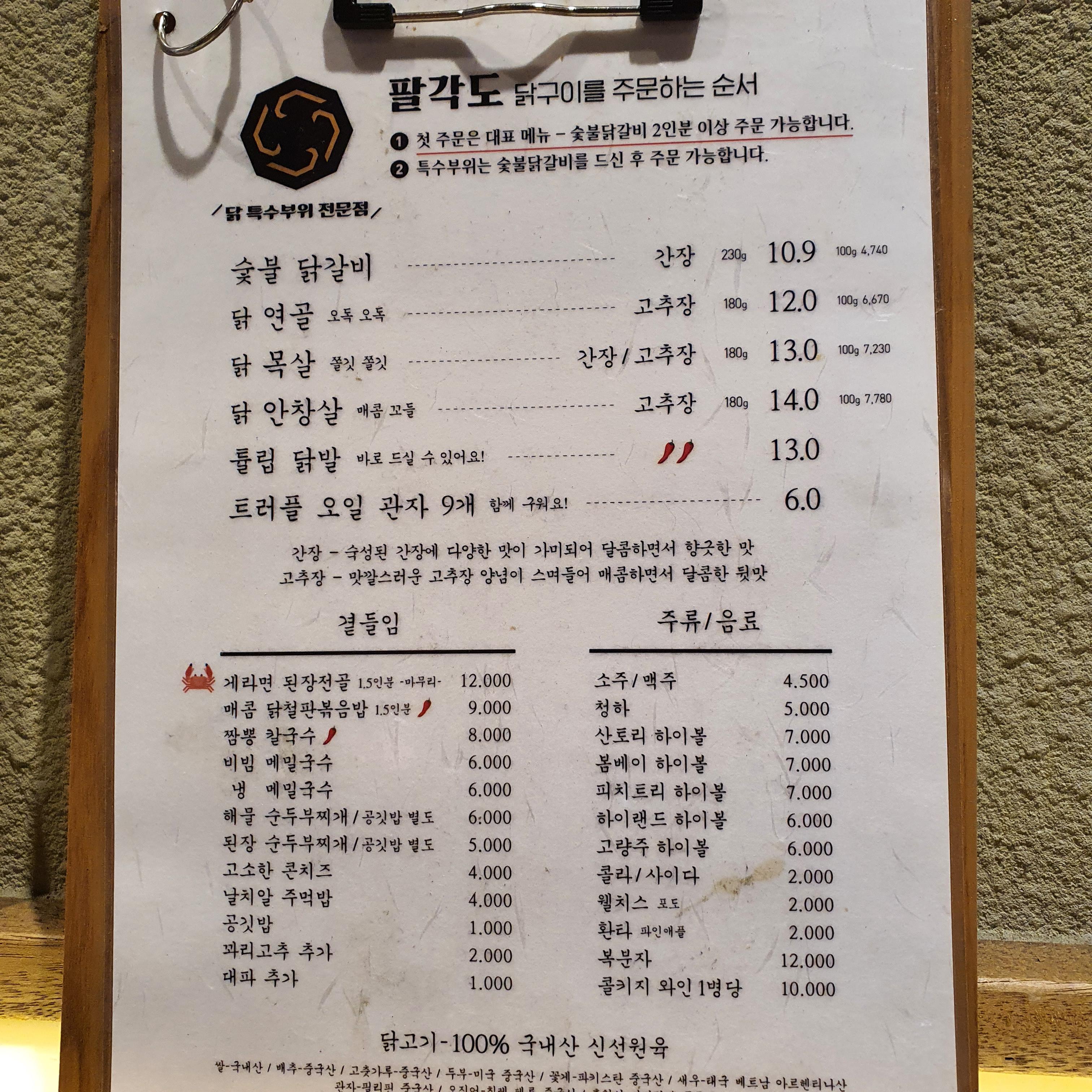 메인이 되는 숯불 닭갈비와 연골,목살,안창살 등등의 여러가지 특수부위를 판매하네요. 튤립 닭발은 뭔지 이름부터 궁금증을 자아내지만 패스!